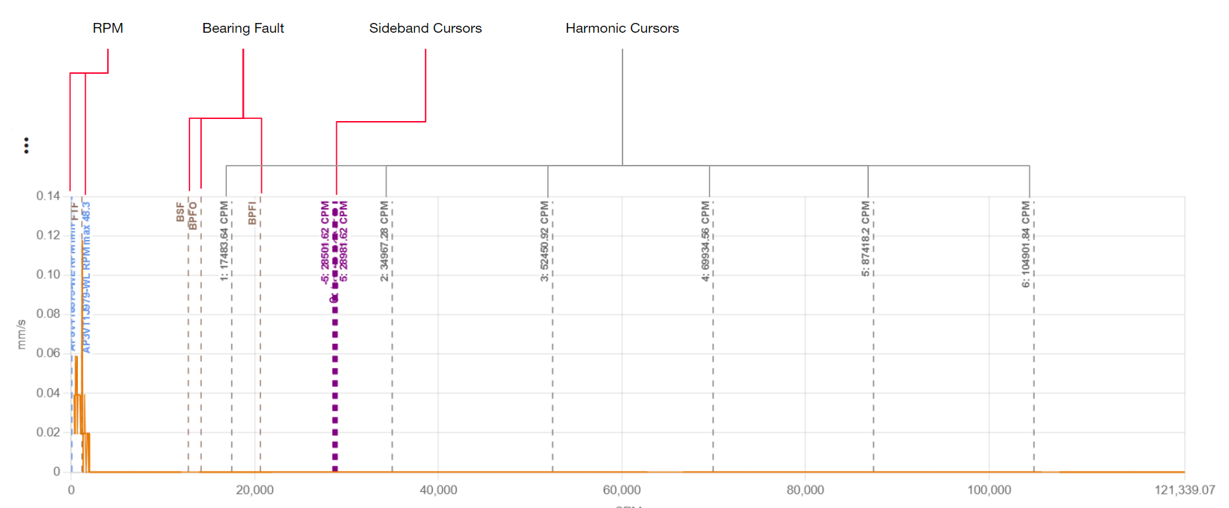 After that, the user can select to set harmonic or sideband cursors. An example of both cursors set with this method is shown below.