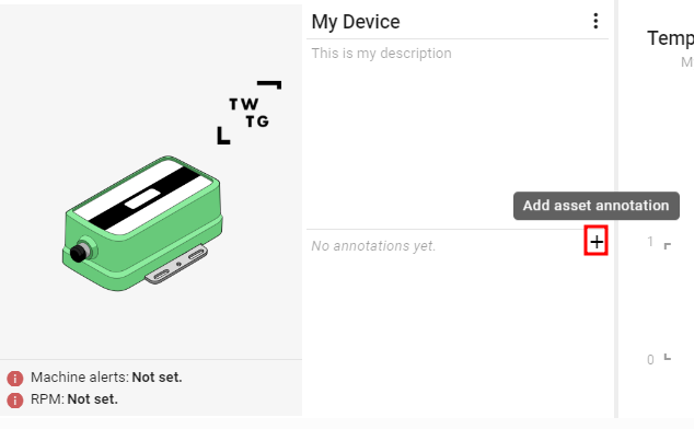 Annotations can be made on the overview of a machine or device by clicking on the **+** sign as shown in the image below.