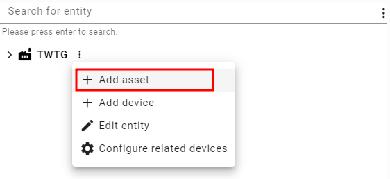 In order to add an asset, click on the vertical ellipsis next to the existing asset under which you want the new asset to belong.