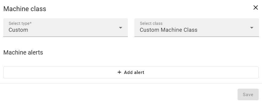 From the dropdowns, the user can select pre-defined options based on the ISO10816 or add custom alerts. For example, selecting the type General Machines and the class Medium Machine Class II will define alerts for the device as the example below: