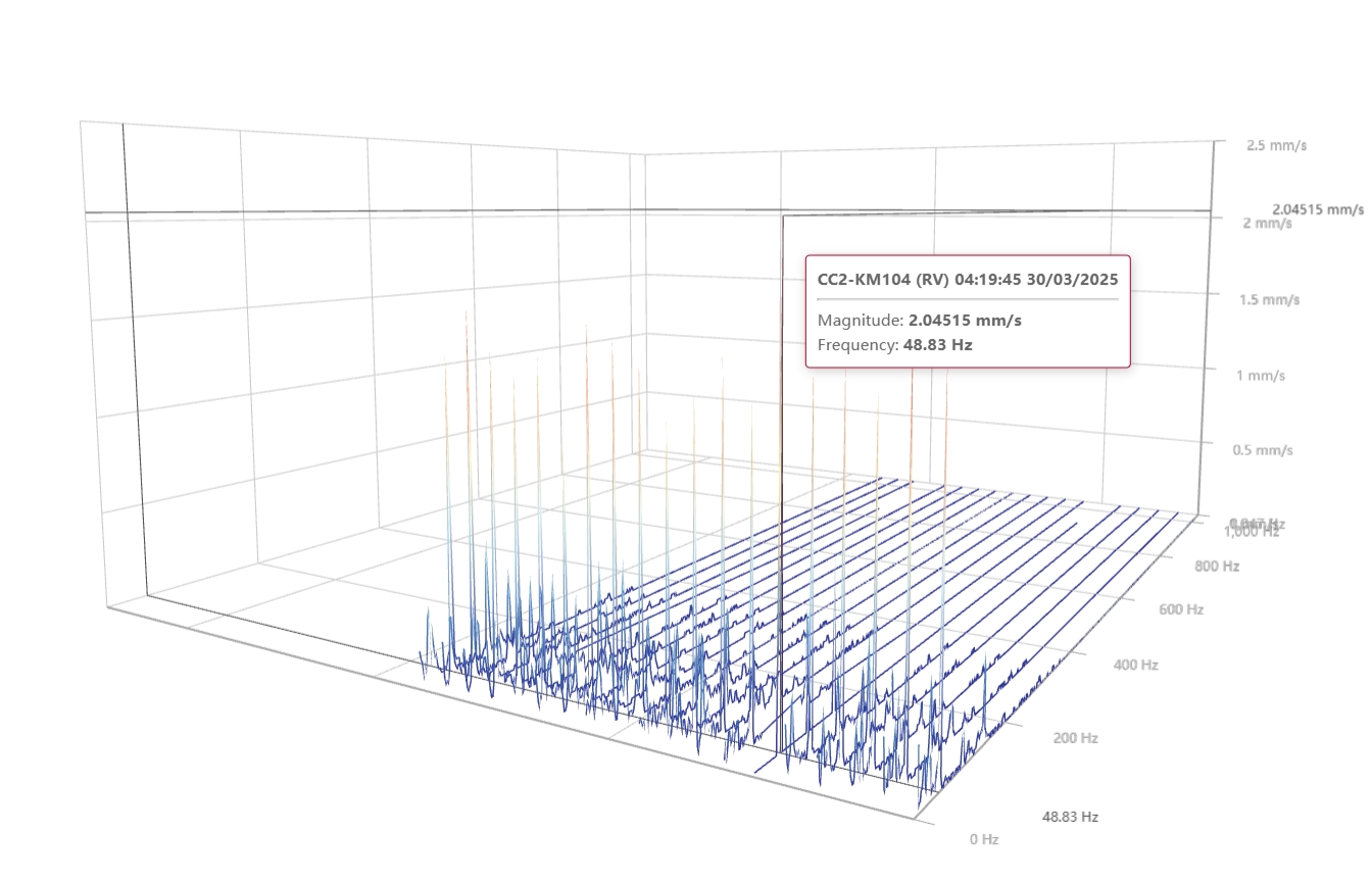 Spectrum selection: select the type of spectrum to visualize (acceleration, velocity, or envelope)